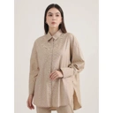 Blouse bergaya modern minimalis dengan potongan oversized dan relaxed fit, memberi tampilan effortless namun tetap rapi. Terbuat dari bahan textured premium yang lembut, ringan, dan jatuh sempurna di badan. ideal untuk tampilan kasual hingga smart-casual.