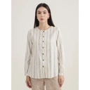 Blouse bernuansa natural dengan motif garis vertikal hijau lembut yang memberikan kesan jenjang dan menenangkan. Didesain dengan potongan longgar dan full kancing depan, blouse ini menghadirkan tampilan clean dan effortless yang mudah dipadukan dengan berbagai gaya.