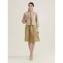 Dress satin berwarna gold olive dengan outer brokat bermotif bunga yang lembut dan berstruktur. Desainnya memberikan tampilan yang anggun namun tetap modern sempurna untuk acara formal, semi-formal, hingga momen istimewa.