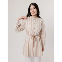 Tunik Didesain dengan motif garis lembut bernuansa netral, blouse ini memberikan kesan manis dan elegan yang cocok untuk berbagai suasana.