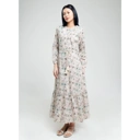 Long dress bermotif floral kecil yang lembut dan timeless. Motif bunganya berwarna pastel sehingga memberikan look yang fresh namun tetap soft cocok dipakai untuk aktivitas harian hingga acara spesial.