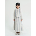 Anak Perempuan :Blouse tangan panjang anak dengan vest bermotif garis vertikal disertai dengan rok bermotif garis vertical biru putih.