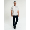 Koko Bapak :Kemeja lengan pendek bermotif garis vertikal senada dengan potongan regular fit yang nyaman dan cocok untuk tampilan kasual rapi.