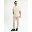 Koko Bapak :Kemeja koko lengan pendek warna cream dengan detail bordir vertikal berbahan adem.