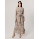 Set inner + outer dress motif etnik yang earthy dan elegan. Inner dress hadir dalam warna mocha/beige yang netral dan clean, sementara outer-nya menggunakan motif etnik modern dengan perpaduan warna soft grey, coklat muda, dan hint hijau muda, memberikan tampilan yang hangat dan estetik.