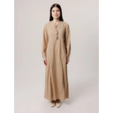 Long dress polos bernuansa beige yang menghadirkan gaya minimalis, elegan, dan effortless. Dengan detail tie-neck di bagian kerah dan potongan longgar yang jatuh cantik, dress ini nyaman dipakai sepanjang hari tanpa mengorbankan tampilan yang rapi.