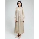 Set dress panjang bernuansa soft beige yang dipadukan dengan outer bertekstur yang memberikan sentuhan elegan namun tetap sederhana. Kombinasi warna netral membuat look ini terlihat clean, modern, dan sangat mudah dipadupadankan.