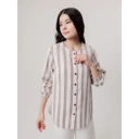 Blouse didesain dengan motif garis vertikal merah marun yang memberi kesan jenjang dan elegan, blouse ini jadi pilihan tepat untuk tampilan feminin yang tetap profesional.