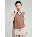 Layer: Vest warna mocha, model V-neck, detail logo kecil