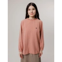 Blouse dengan gaya feminin dan minimalis. Warna pink dusty yang lembut memberi kesan manis dan hangat, cocok untuk dipakai ke kantor, hangout, atau acara santai.