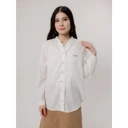 Blouse putih dengan desain klasik yang elegan, cocok untuk tampilan formal maupun kasual. Didesain dengan potongan regular fit dan detail kancing depan yang memberikan kesan rapi dan feminin.