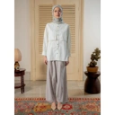 Blouse motif garis pastel bernuansa putih ivory. Garis vertical tipis warna hijau pastel memberi kesan fresh, bersih, dan membuat tubuh terlihat lebih jenjang.